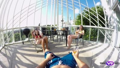 Kristy Black y Dany fueron invitadas a pasar una tarde diferente en casa de su amigo, que las graba en POV en una escena de VR genial!