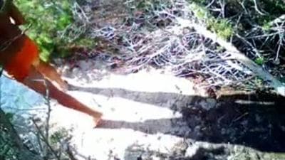 Una cámara fijada a este árbol, va a grabar le momento en el que este hombre se hace una sabrosa paja al aire libre. Miralo calentándose.