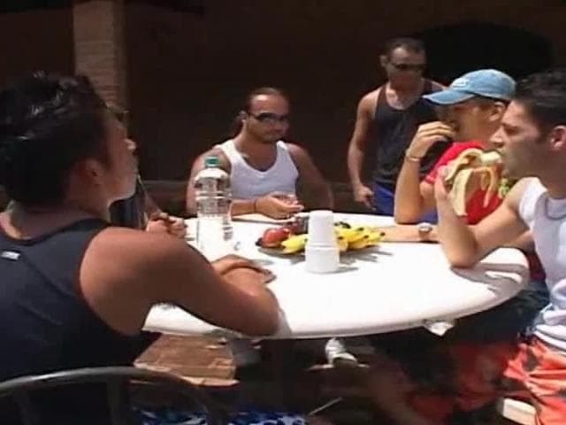 Lo que parece ser una reunión de tipos muy machos acaba siendo una fiesta de gays en la que los majos se cogen los traseros hasta correrse.