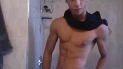 No te pierdas a este tipo gay que tiene una polla inmensa que se toca divinamente mientras está tomando una ducha caliente. Acabará corriéndose.