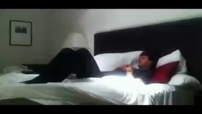 Esta mujer se pone caliente cuando ve que su amigo la espera acostado en la cama, y quiere complacerlo montándose desnuda sobre él.