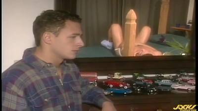 Sebastian Cruz recibe la ayuda de Christopher Scott para lograr meterse completo el enorme dildo que se ha comprado. Luego pasarán a otro nivel.