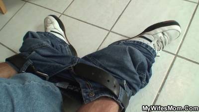 Una vieja rubia invita a su vecino a tomar algo pero lo que quiere es follarle la polla duro y bien.