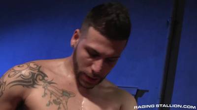 Escena de sexo homosexual con trío con unos guapísimos chicos.