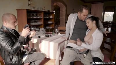 Esta preciosa morena chupa demasiado bien y con sus grandes tetas está volviendo loco a este tío ultra cachondo que la embiste con su polla.