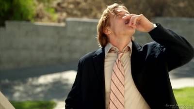 Este oficial de policia no sabe lo que le espera cuando va a casa de esta hermosa rubia. Ella lo lleva a la habitación y se lo lleva directo a la cama