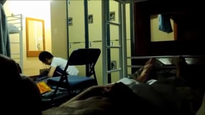 Este chico se excita masturbándose mientras sus compañeros de cuarto en en un hostal lo observan. No te lo pierdas.