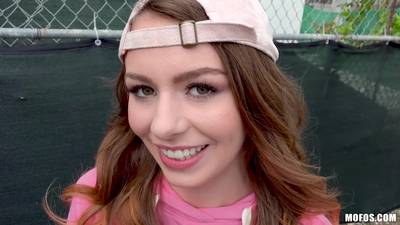 Una mujer morena va a ser recogida en la calle, luego acabará siendo follada suciamente con su pequeño jersey rosa.