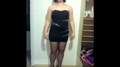 Esta sexy trans vestida se acaricia los pechos y se masturba para correrse en sus zapatos. Es una gran paja que no te puedes perder.