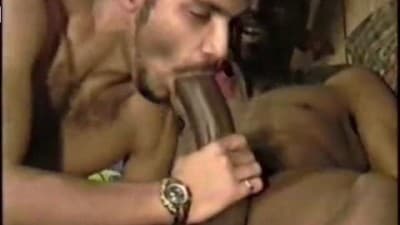 Este negro de polla gigante disfrutará mucho con un gay que le quiere ver la verga dura y por eso se la chupa sin parar hasta el cansancio.
