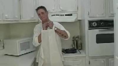 El cocinero Stevens se lo pasa muy bien hoy en la cocina mientras se agarra la polla dura y se corre también