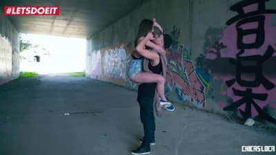 Esta morena quiere tener una aventura sexual en la calle y para eso es que se cita con un tío que se la folla en un túnel abandonado para gozar mucho