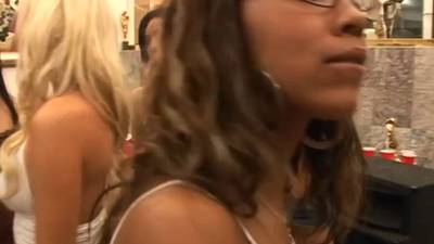 Una noche americana llena de bombas calientes, que termina en una sesión de sexo en trío. Las chicas muestran sus traseros y los tíos se las follan.
