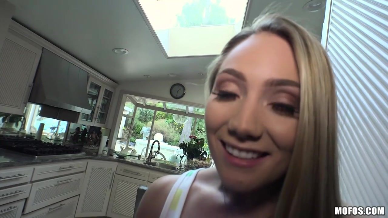 Esta linda rubia le mama la polla a su novio escondida detrás del mesón de la cocina. Su padre llegará pero no se dará cuenta de lo que allí pasa. 😈