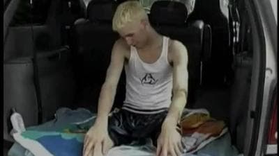 Andrew Blaze masturbándose en el coche hasta eyacular.