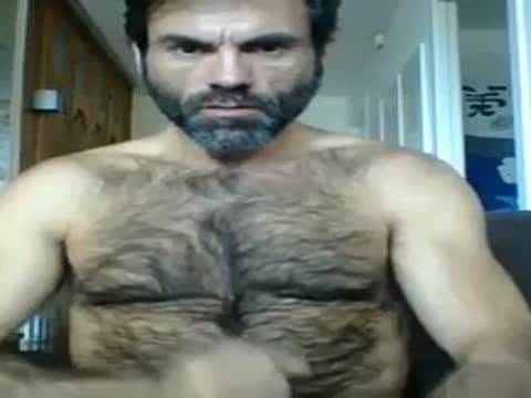 Este viejo de cuerpo musculoso y muy peludo está solo en casa. Se está divirtiendo masturbándose frente a la cámara para sus espectadores .
