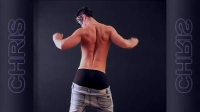 La estrella del porno gay Chris está bailando. El tipo se lo pasa muy bien haciéndolo y acaba divirtiéndose con su gran pene en la mano.
