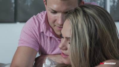 Esta hermosa rubia se calienta el coño con un vibrador para recibir a este para de chicos guapos que se la follan sabroso y la hacen pasar muy bien.