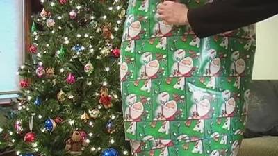 El chico abre su regalo de Navidad y se sorprende, no esperaba esto. Es un tipo musculoso, con un gorro de Papá Noel, masturbándose.