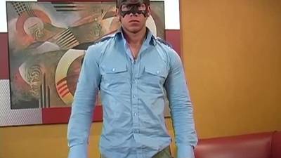 Este policía no quiere ser reconocido, así que se pone una máscara para esta escena porno. Se quita la ropa y muestra sus músculos antes de masturbarse.