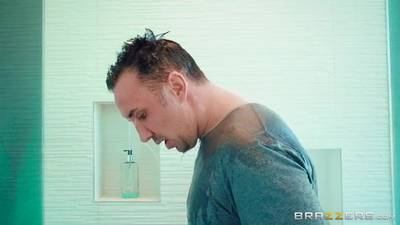 Aidra Fox es espiada por el amigo de su hermano mientras ella toma una ducha caliente. El tipo tiene una polal enorme que ella no va a dejar pasar.