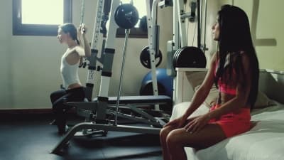 Lexi y Nataly se excitan mutuamente en el gimnasio acariciándose