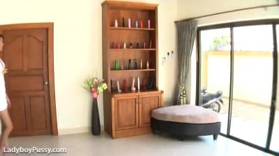 Esta dulce transexual asiática tiene toda una colección de dildos que se adaptan a su coño operado y a su ano.