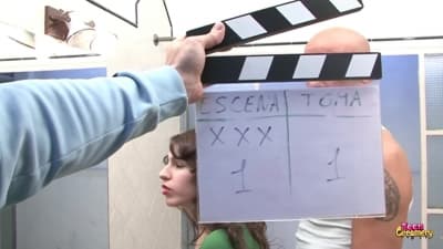 Una morena muy joven está rodando una escena en el baño. Pechos pequeños, y coño pequeño, va a ser tomada en todas las posiciones