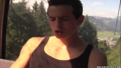 Después de un buen viaje y de disfrutar de las vistas, el guapo llega a su casa y empieza a masturbarse intensamente.
