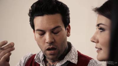 Este tío tatuado está haciendo una audición con estas dos preciosas zorras para ver lo calientes que están!