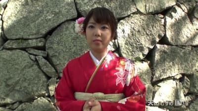 Esta hermosa asiática lleva puesto un kimono rojo y no lleva pantaletas así que nos va a dejar ver su coño antes de que el tipo se la folle.