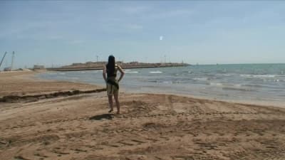 Esta morena paseaba por la playa hasta que se encontró a un amigo que la ha puesto a mamar su polla y luego se la lleva al apartamento para follar.
