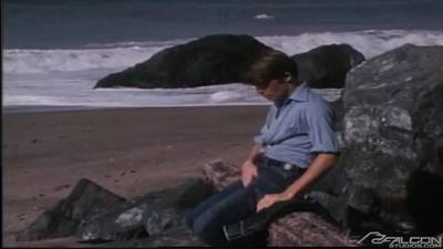 Un hombre guapo en la playa disfruta de un momento de intimidad y aprovecha este momento para liberar algo de tensión sexual.