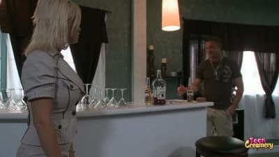Super sexy y atrevida rubia tetona recibe dosis de esperma caliente