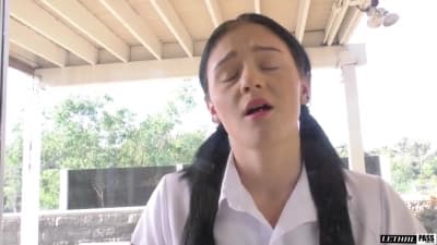 Se folla bien a la joven morena, aunque no tiene una gran polla, pero sabe darle golpes secos en su húmedo coño!