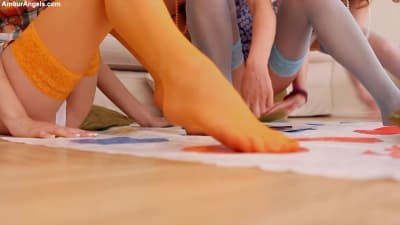 Caliente tres chicas con medias sexy y juega en el juego twister conseguir caliente y empezar a jugar con sus coños