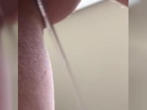 Parece una tontería, pero de hecho, lo que esta mujer está chorreando de su vagina es su propio jugo que cuelga sin romperse durante un par de minutos