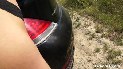 A la joven Sara se la cojen de espalda en un coche al aire libre