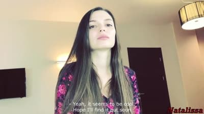 Una sexy jovencita de cabello oscuro celebra su cumpleaños 18 en un cuarto de hotel follando con su hermanastro.