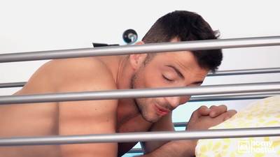 El sexy moreno abre un hueco en la cama para recrear su propio gloryhole en el hostal. La bella Lady Dee queda impresionada con este macho.