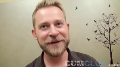Este tipo rubio de barba recibe una increíble corrida facial después de chuparle la polla a su amigo sin parar.