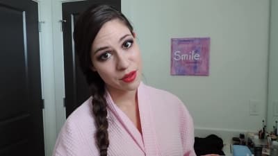 Ashley se está preparando para una fiesta, está vestida con liguero y tacones sexy. Ella chupa en garganta profunda y se lleva el chorro en la cara.