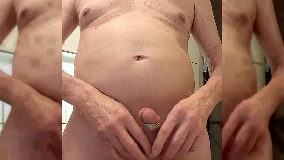 Este madurito está cachondo lo único que quiere es mostrar su cuerpo en este tanga y ponerse anillos de metal alrededor de la polla y los huevos