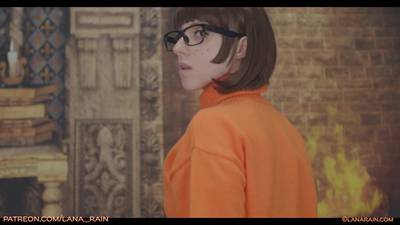 Esta traviesa se disfrazó de Vera, la famosa investigadora de la serie Scooby-Doo, para meterse un plug anal y un consolador en el coño
