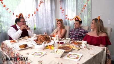 Es una fiesta bastante especial para esta familia! El día de Acción de Gracias se celebra con una polla en el coño en lugar de compartir una comida