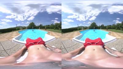 Rosaline sabe que su macho tiene una cámara VR y que la va a grabar mamando su pene mientras pasan la tarde en la piscina tomando el sol y follando con gusto.