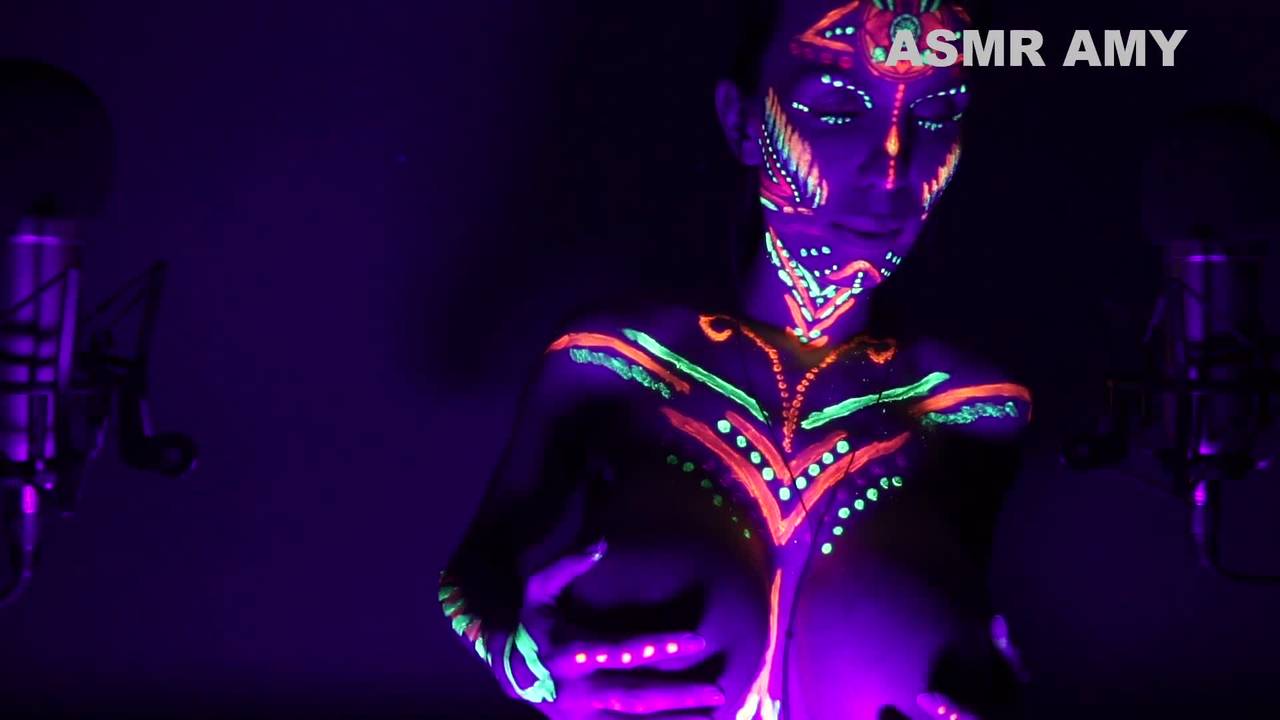 Todo lo que tienes que hacer es pintar tu cuerpo con una pintura especial, para que brille bajo la luz UV. Luego simulas sexo en ASMR como en este porno.