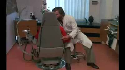 La sexy rubia Brigitte es examinada por el atractivo doctor que masajea sus pechos mientras ella gime de placer en la silla.