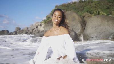 En este sensual vídeo al aire libre, la sublime Putri Cinta acaricia su delicado coño con pétalos de rosa.