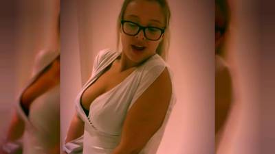 Esta rubia tetona quiere mucho el trabajo y por eso en la entrevista se desnuda y le chupa la polla al jefe.